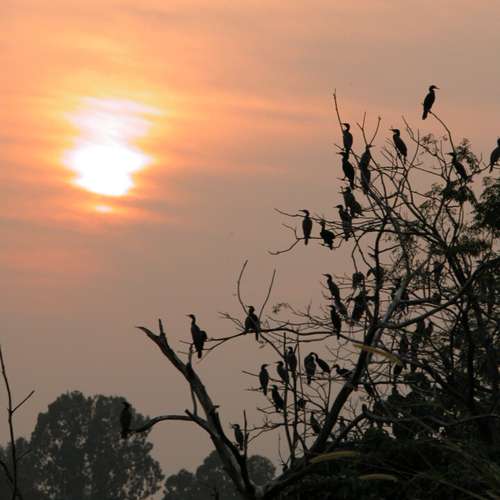 sunset and birds