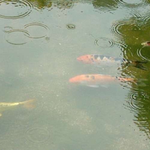 有幾條魚兒,在池塘裹遊來遊去