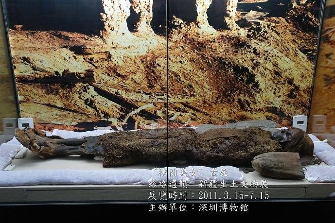 本次展覽包含有“樓蘭美女”古屍、彩陶、漢唐織品、魏晉文書、唐代金銀器、佛教壁畫等各類文物一百四十餘件。