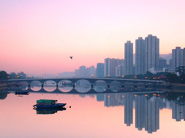水平如鏡的城門河所做出的倒影,有很好的效果。