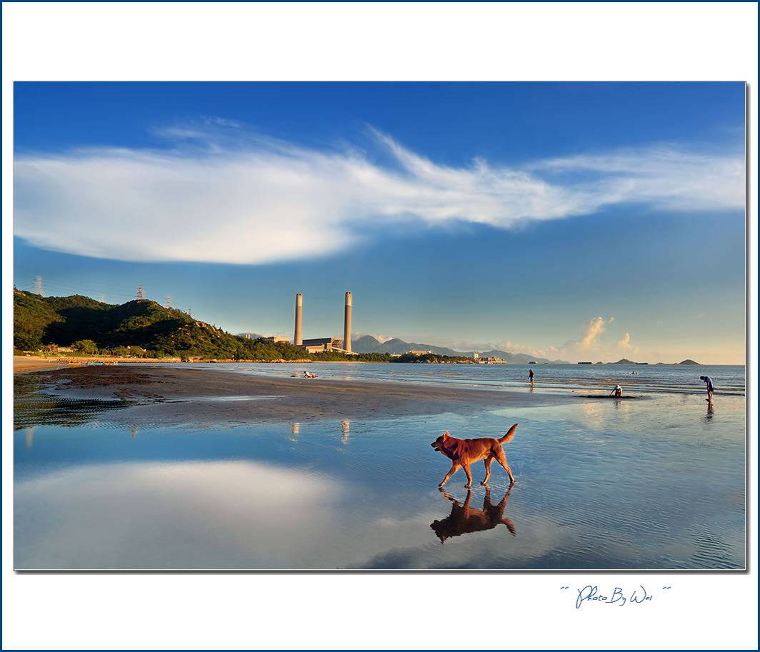 極美構圖。倒影和前景的狗狗著實精彩。
