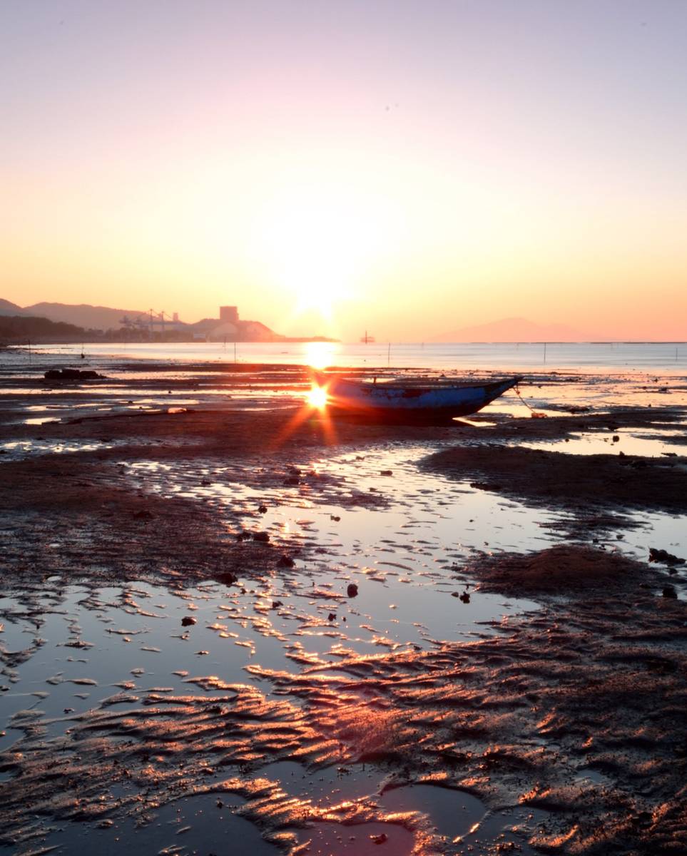 泥灘上夕陽