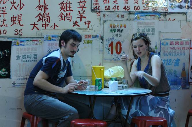 北美來的情侶,努力地看無論如何也看不懂的餐牌。雖然如此,至少他們有膽量嚐試旅遊生活的滋味。