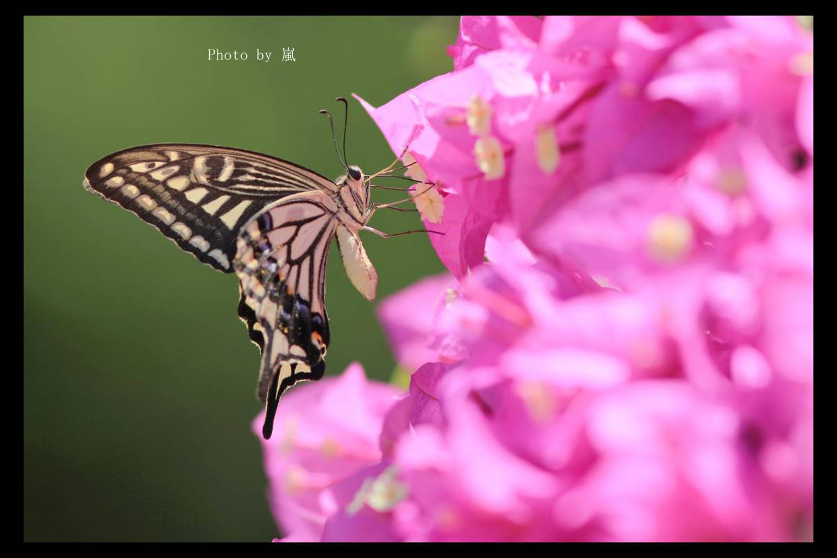 沒見過柑橘鳳蝶採三角梅, 今天竟見到了, 不過三十多度的天氣, 熱到暈.......