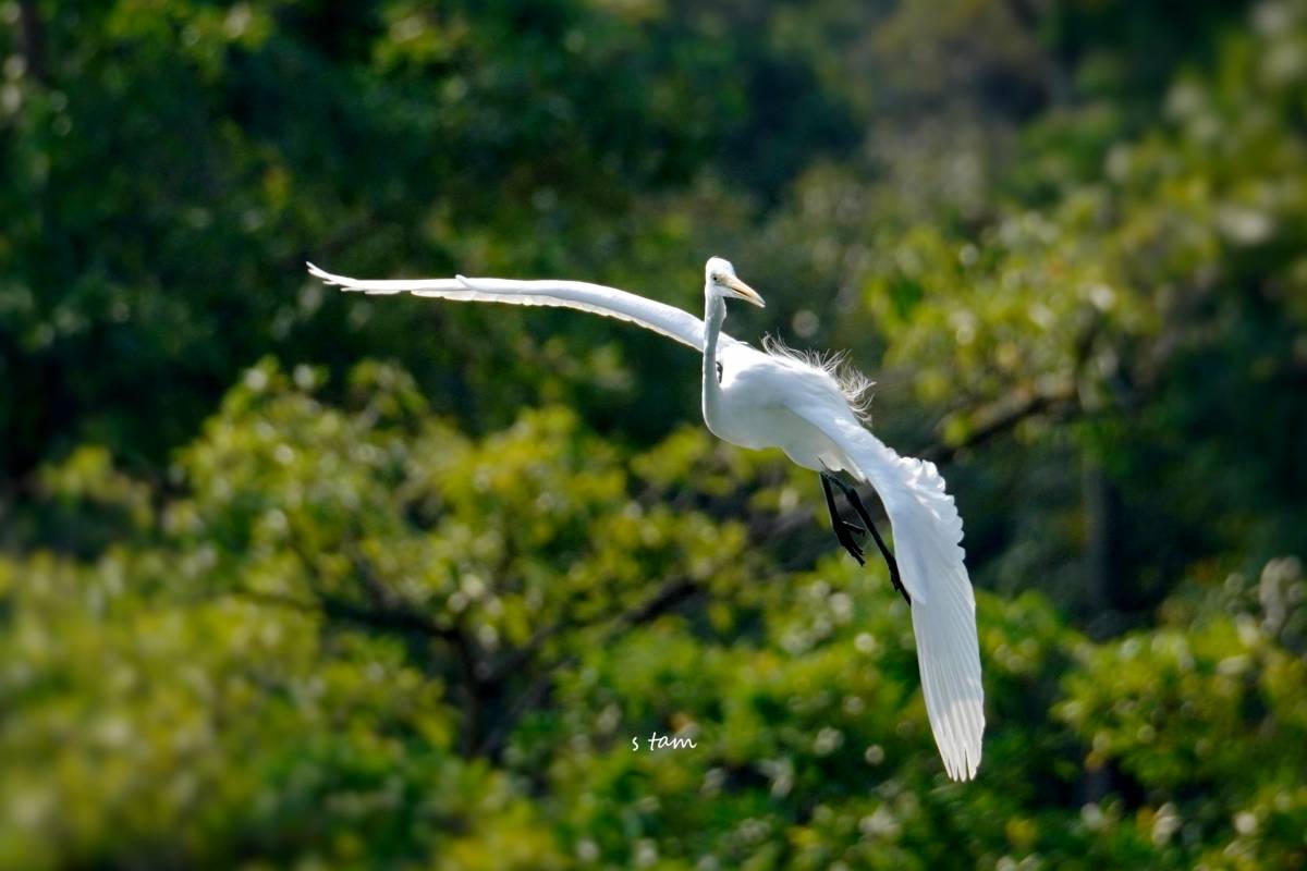 白鶴翱翔,林間飛舞,姿態優美。正!