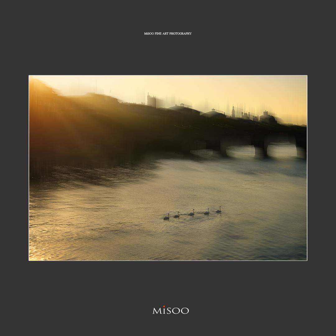 五隻天鵝靜靜滑過河面,像是在喧囂甦醒之前,替這座城市完成一場無聲的喚醒儀式。