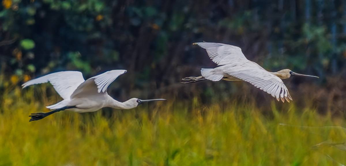 紫鷺飛行表演連還圖