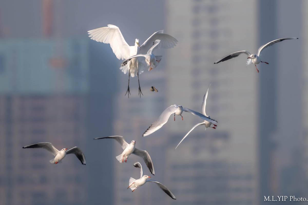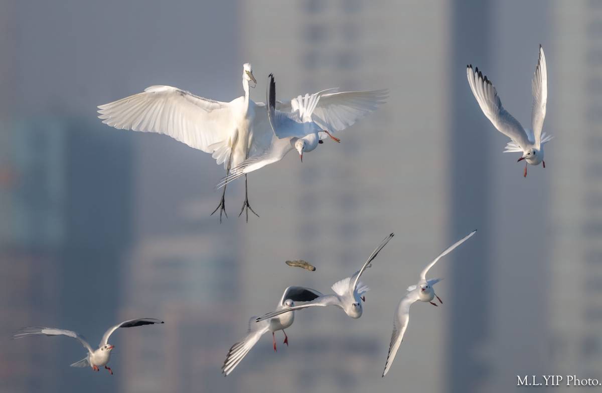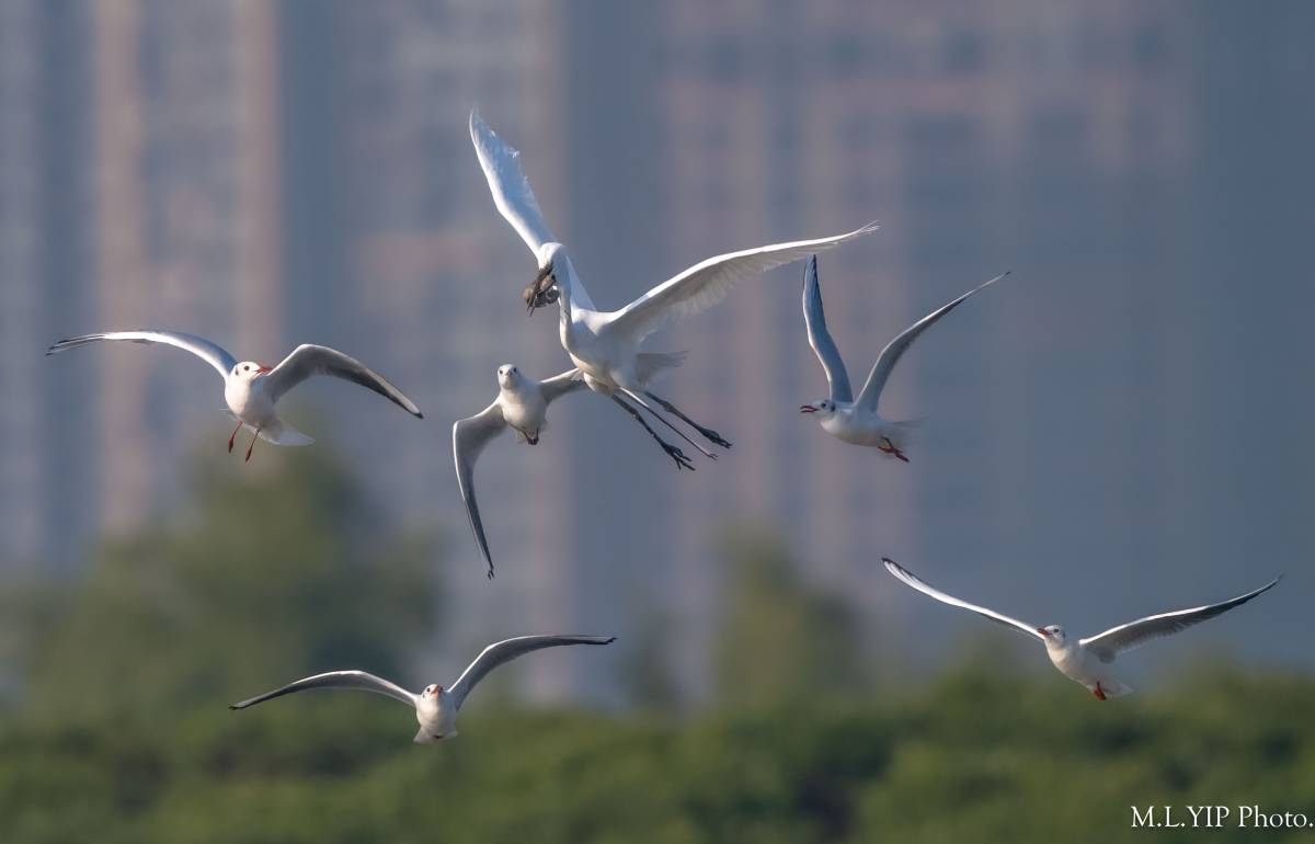 又係紅嘴鷗搶大白鷺, 結果又係一拍兩散.