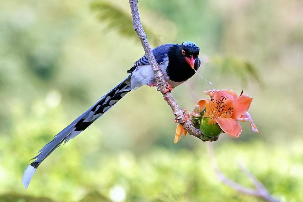 红嘴蓝鹊訪紅棉-7528