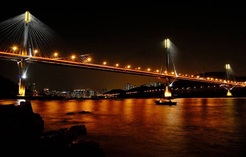 美麗燈光之下 只有遠處船家與我共賞