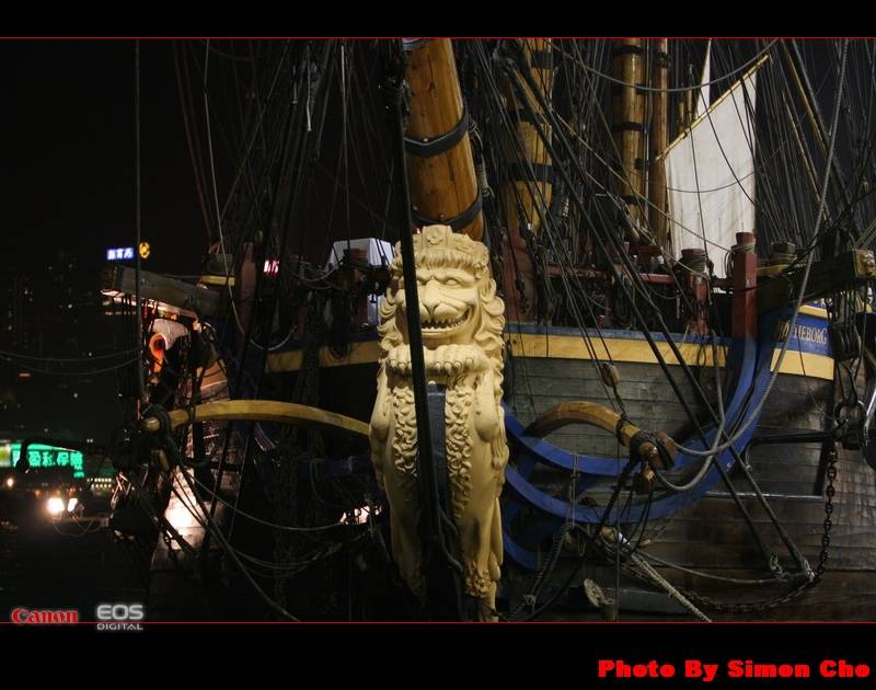 晚上的歌德堡號船頭