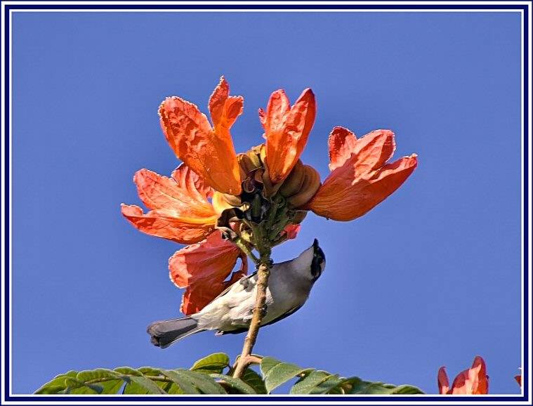 藍天紅花白頭綠葉