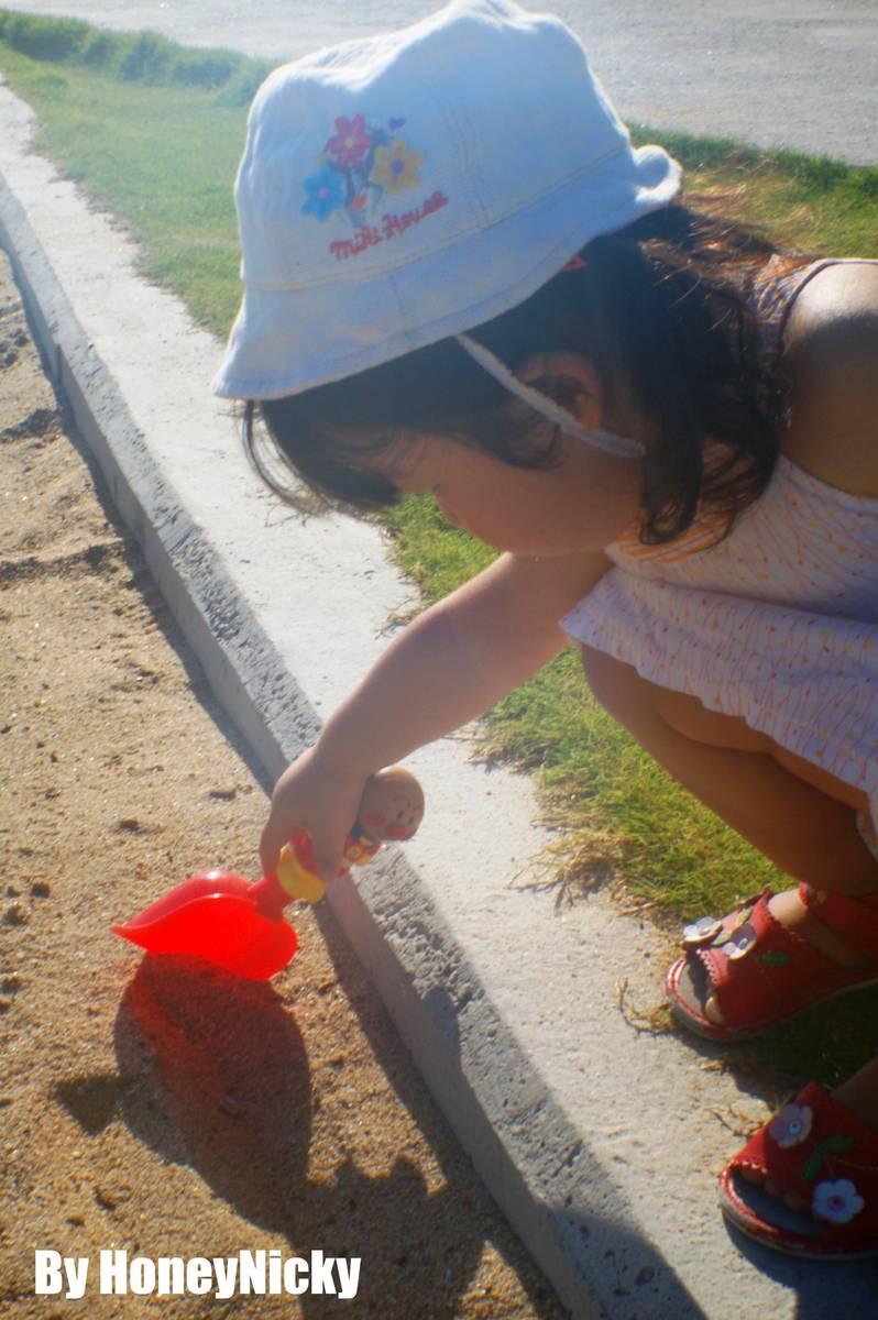 可愛的日本小朋友在堆沙