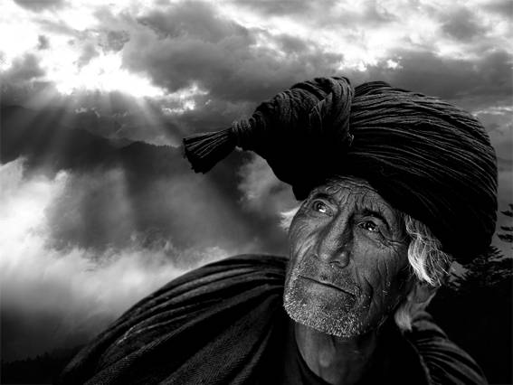 山雨过后,阳光从云层里射出光芒,在老人脸上写下了希望和未来!
