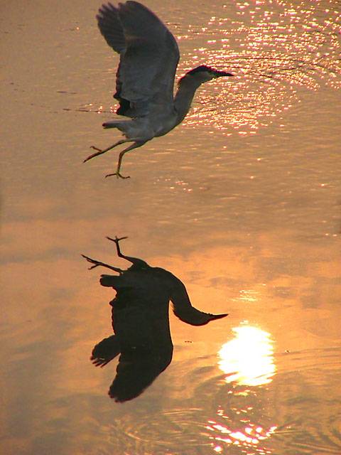 嘩, 強呀, 雀鳥在黃金之湖奔馳, 加上太陽的影子, 構成如畫的作品.