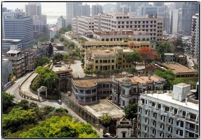 1997年澳門回歸前拍的嶺南中學全景,攝于東望洋。