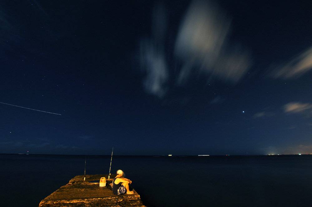 7月的Waikiki。去夏威夷出差一个月,顺道去玩一下。日落过后,Waikiki beach的人都开始散去,之后就开始有夜钓的人触摸。没有云的晚上感觉好舒服。