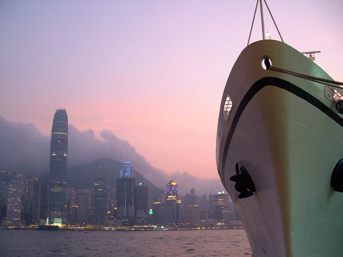 這幅相我的原意是用視覺之錯覺效果將船之高度高於國際金隔中心,而船旁己經是碼頭,所以如果拍攝時將相片橫過少少便會將碼頭也攝入相片內會影響效果。