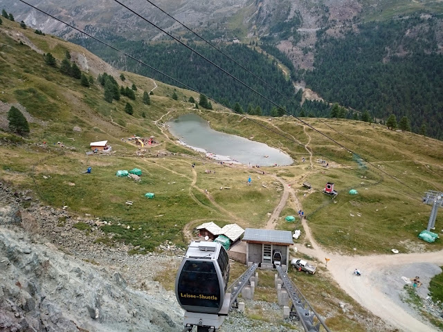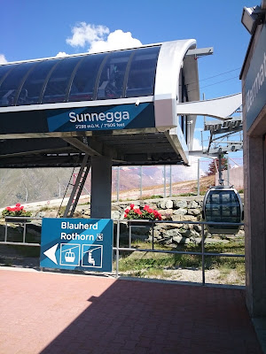來來回回,終於登上山中的纜車前往Sunnegga ,再坐吊車到Blauherd, 三十分鐘左右就到。