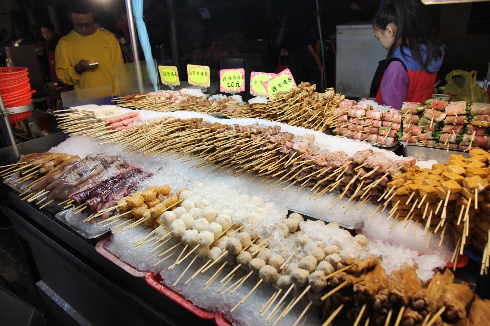 寧夏夜市的小吃充滿濃濃的臺灣味,香噴噴的滷肉飯和雞肉飯、清甜鮮美的蚵仔煎和大腸蚵仔麵線、現炒入味的沙茶牛肉、滋補養顏的豬肝湯、來自府城的臺南碗粿、沙拉魚卵、吳郭魚湯等等,都讓人忍不住食指大動。夜市另一邊的攤販,以新奇好玩的雜貨和玩具為主,販售的商品頗具流行感,價格不貴,在飽嚐美食之餘,不妨也來走走逛逛。