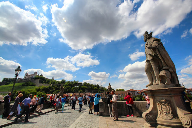 去subway 吃午餐, 去老緬茵橋Alte Mainbrücke,有十多個雕像,應該都是主教之類,遠望山上的瑪利恩堡Festung Marienberg,有pass 可以免費進內,不過都是看畫的,就決定不去了。