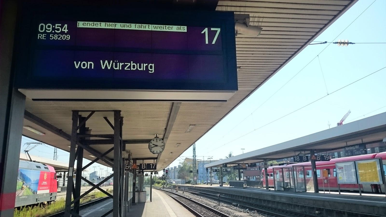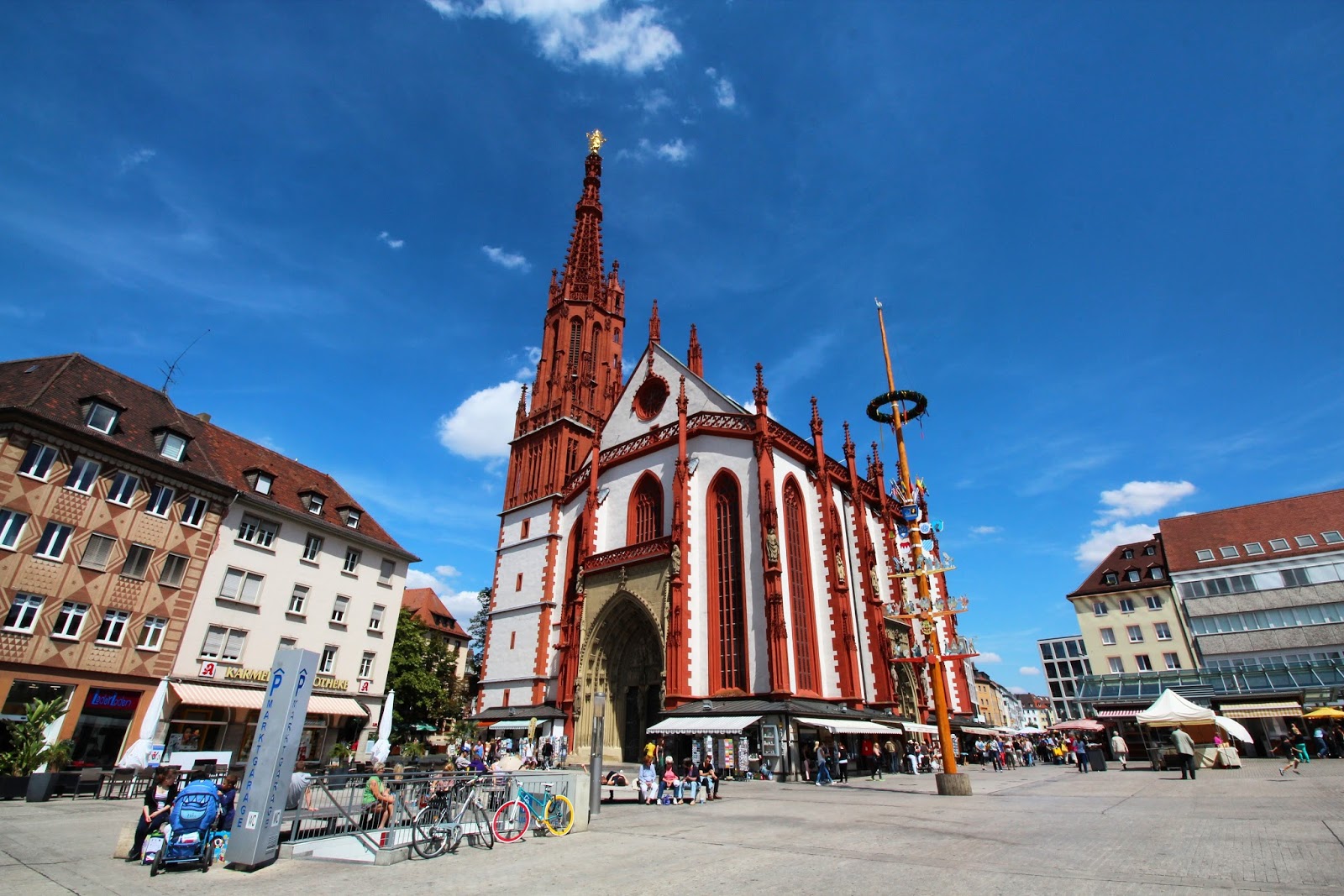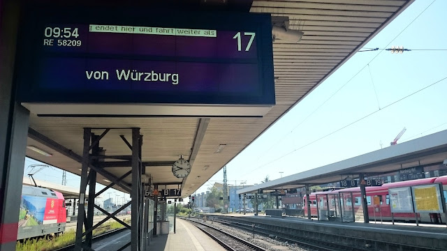 再步行去另一個紅白色的瑪麗亞聖母教堂Marienkapelle,參觀完就出發去羅登堡Rothenburg, 14:41有火車,又跑去火車站,下一班火車要一小時後,好彩趕得切!