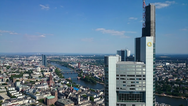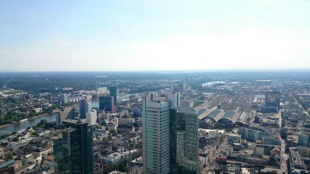 說好要登頂,再去Main Tower ,坐電梯一會就到頂。到達觀景台,看到周圍的高樓大樓,最近而又最高的是DB(德國火車公司) 那一座,這裡可以俯瞰全市。火車站真係有好多條線,應該是歐洲最大最繁忙的火車站之一!