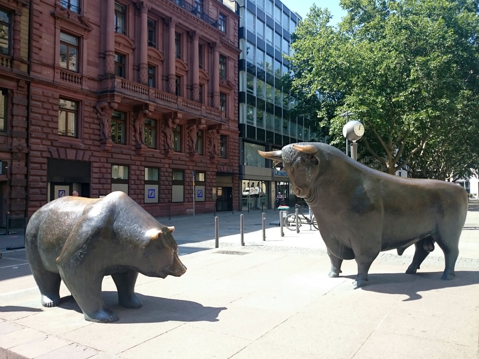 歌劇院冇開,步行去歐洲最古老的股票交易所,門外有幾個雕像,名字好似洲名,唔知有冇關連,當然要影出面的牛熊啦,摸下牛角,要牛市呀(回到香港才發現跌市,損失慘重)!