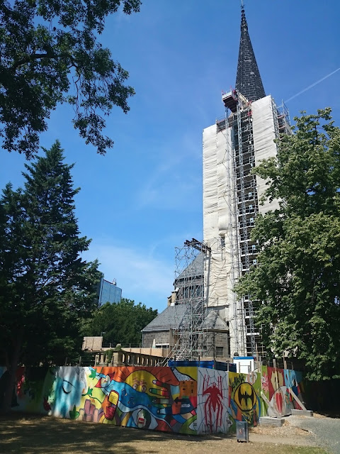 去旅遊地圖顯示的教堂,去到發現維修中,圍板被塗鴉了,神聖的教堂遇上街頭交化,相映成趣!