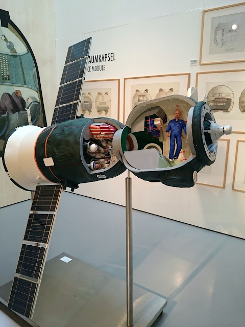 建築博物館內有不同的建築模型、藍圖,當然有這裡著名的建築,例如Main Tower,還看到里昂那個在海邊的展館Musee des Confluences(有興趣可以到http://travelwilson.blogspot.hk/2015/09/52-7-jul-2015-day-3-lyon.html)。二樓的主題是太空,有太空艙、太空衣等。三樓有廿二個建築模型,由古代到現代。四樓是照片展,慢慢走慢慢看,都逛了一個小時!
