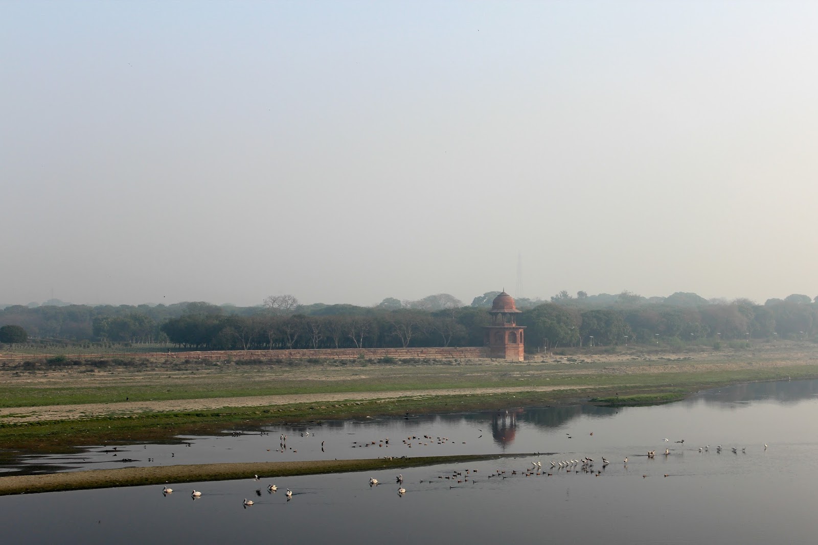 泰姬陵背後的河流,據說國皇曾打算在對岸建造一個黑色的陵墓給自己,再以橋連接,代表他死後也可以與愛妃連在一起,浪漫到不行! 不過建造泰姬陵已令國庫空虛,又那有金錢再建造多一個呢? 結果國皇被理智的兒子軟禁在愛加拉堡。 離開泰姬陵,下一站就是愛加拉堡。 |