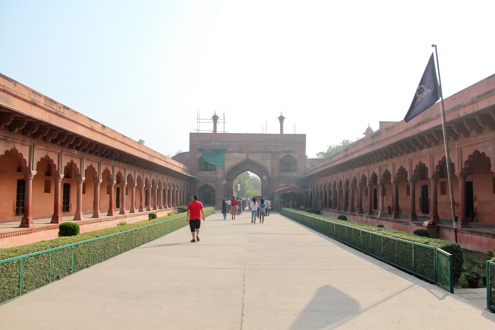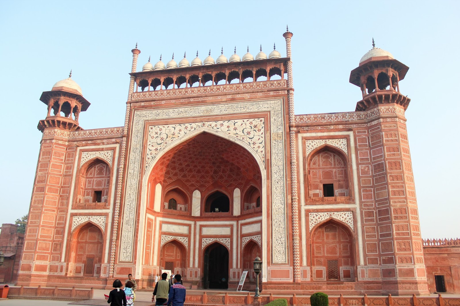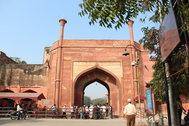 進入泰姬陵(Taj Mahal)前需要買票、買鞋套,過安驗。坦白說來印度最想看的就是泰姬陵,進入園區後,全都是紅色的建築物,那白色的呢???在哪呀?好心急!