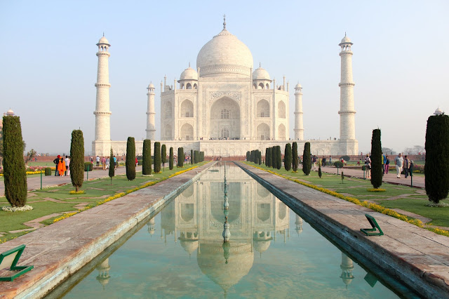 泰姬陵對稱的建築,甚至池水的倒影,都跟據精密的計算而建造,古代人的建築技術的確令人嘆為觀止!
