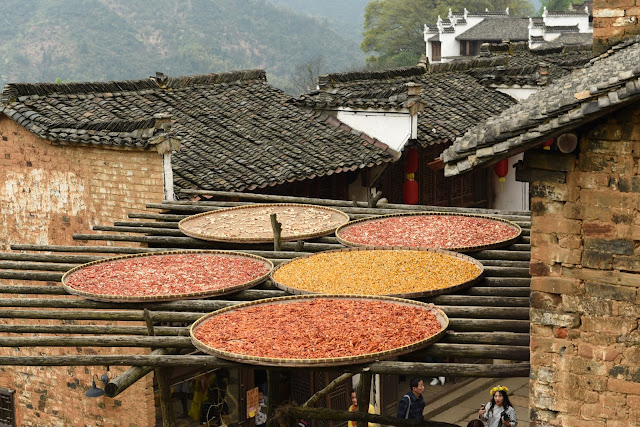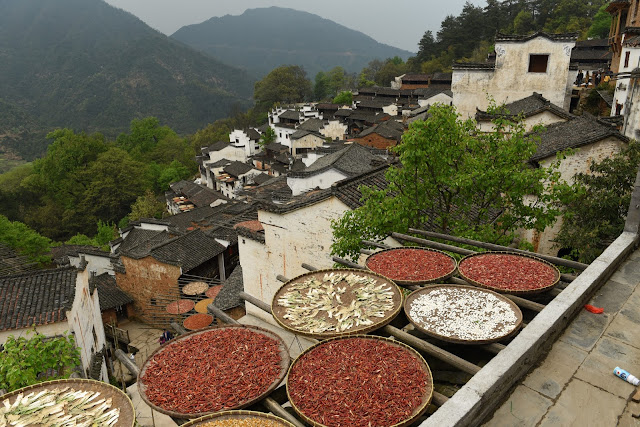 11:00 am 到達葟嶺山腳,在葟嶺山腰吃午飯。 觀看這個建造在山坡上的古村和屋前屋後架出的晒秋盤子。