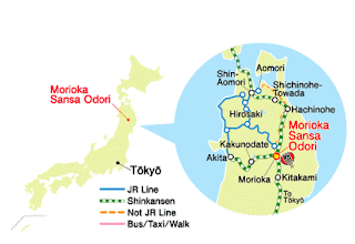 配合著「Sakkora!Choiwayasse!(日文為: サッコラ、チョイワヤッセ,意指召喚幸福快來)」的呼喊聲與輕快地太鼓聲,身穿鮮艷浴衣的舞者們,緩步行走在岩手縣的盛岡市中心區域,一時間,使整個街道全被熱情的氣氛包圍。