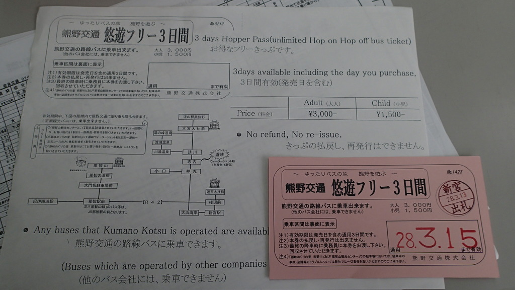 之不過要留意呢個pass只係for「熊野交通公司」的巴士,即係同樣行於熊野三山既「龍神巴士」、「奈良交通」等係要另外比錢的