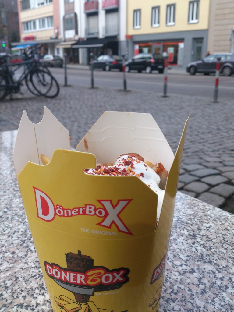係歐洲仲有樣叫Doner Box既物體係香港so far未見過的,說穿了就係搵個電視見得多既鬼佬中餐外賣盒將d薯條or蔬菜or both塞塞塞塞塞,放一堆肉係面再加pet汁,盤菜一樣撈撈撈撈撈lai食,即係唔要包皮齋食餡,味道都同無加麵包係一模一樣既!