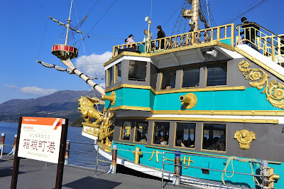碼頭對面有一間很大的酒店,Hakone Hotel。 廣告牌上寫上自助午餐只需要 ¥2900,非常有吸引力 。我們乘坐 1:15 pm 的海盜船前往桃源台港。