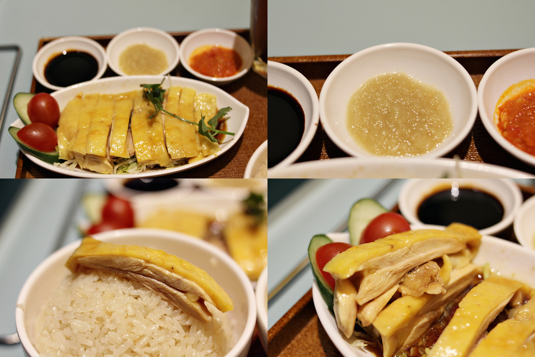 分別唔大,建議慳返唔洗加錢要脾位,附油飯一碗,清雞湯一碗,三款醬汁,海南雞大約十件左右