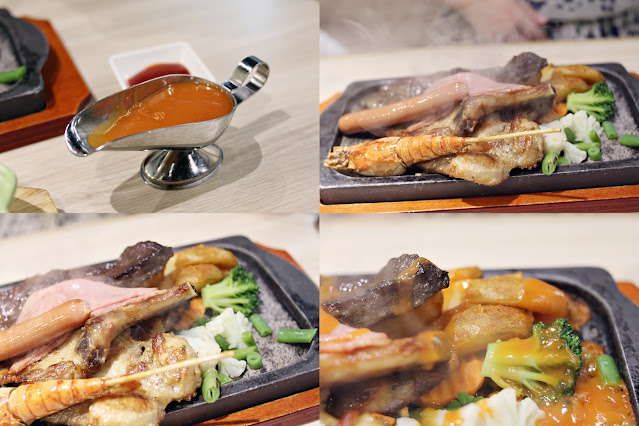 鐵板什扒餐,鐵板係熱石
