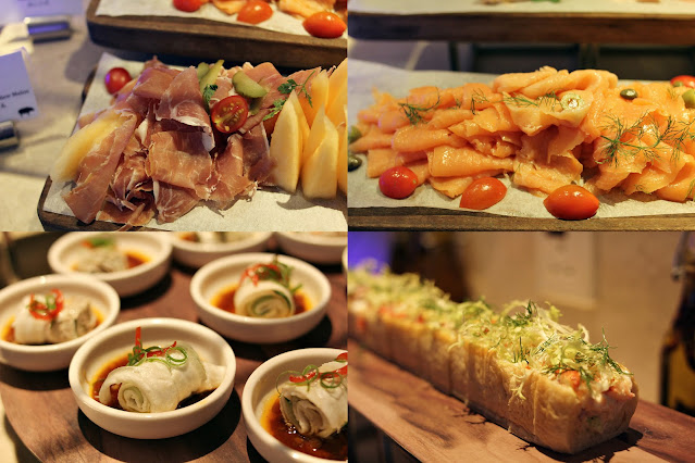火腿,煙三文魚等等,龍蝦蟹肉牛油軟包 蒜泥西班牙豬白肉