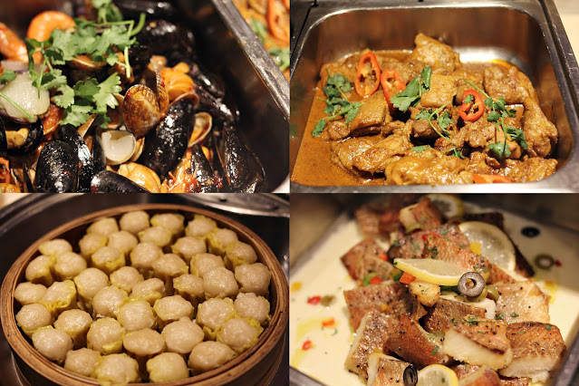 #香煎鴨肝及羊扒、蜜糖芥末燒金門火腿、香草烤羊脾、燒美國西冷牛扒、烤德國腸拼盤、北京片皮鴨、香草脆皮豬腩卷、香煎牛仔骨配洋蔥汁、蝦醬炸雞翼、海皇翠塘豆腐、印度咖喱羊肉、香烤豬柳伴青胡椒汁、香烤雞胸配芥末籽汁、紅酒燴牛尾、辣炒海鮮、泰式紅咖喱炒青口、煎海鱸魚柳配水瓜柳牛油汁、日式燒汁烤茄子、寶雲酥焗蕃茄、蝦肉燒賣、杞子豬肉燒賣、清蒸沙巴龍躉、碧綠腰果炒蝦仁、欖角骨、蟹肉扒時蔬、四川辣子雞、避風塘炒蜆、蜜椒牛柳粒、燒鴨菜乾粥、海皇飛魚籽炒飯、蝦籽雙菇炆伊麵等