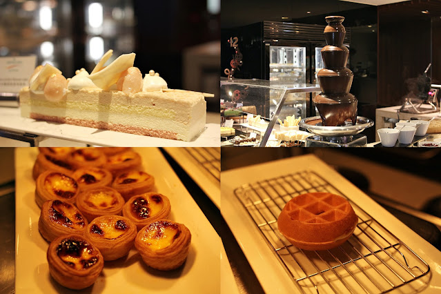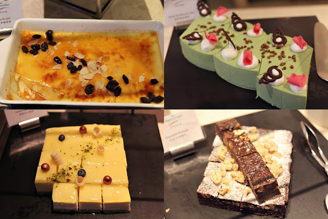 多款甜品輪流供應:8款口味的王牌甜品-瑞士名牌MÕVENPICK雪糕、黑森林蛋糕、蜜桃香檳啫喱、黑芝麻芝士蛋糕、意大利芝士蛋糕、阿華田木糠布甸、意式荔枝金柚奶凍、班蘭焦糖燉蛋、楊枝甘露、栗子慕絲蛋糕、豆腐花、紅豆芝麻球、窩夫、港式雞蛋仔、芋圓DIY、迷你葡撻、麵包布甸及朱古力噴泉等