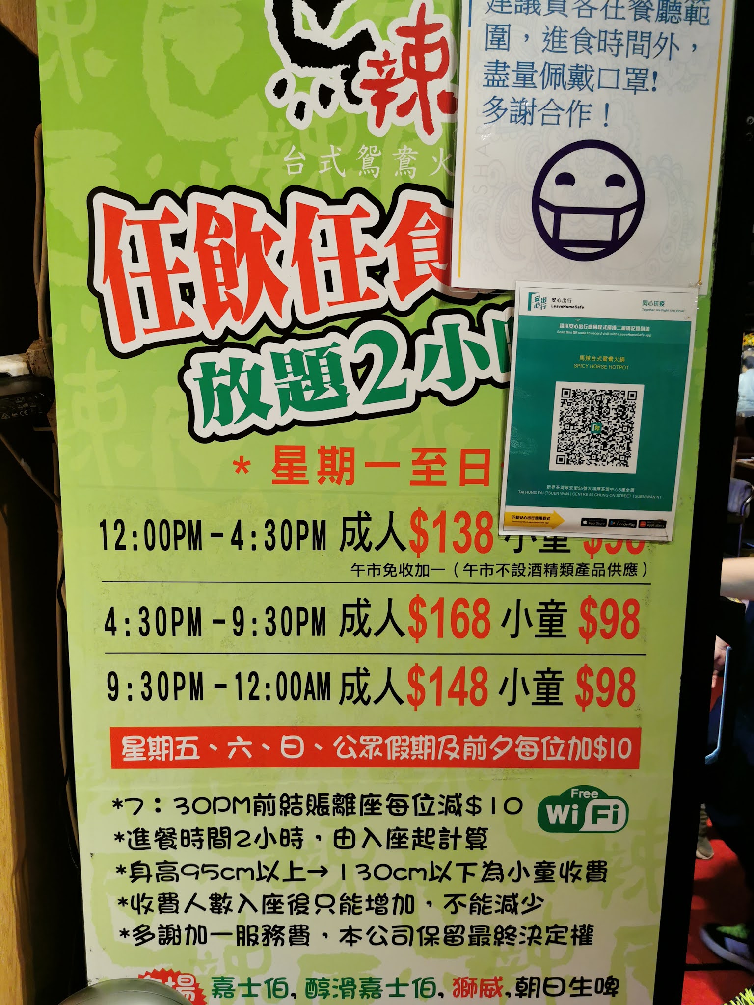 7點半前埋單減$10,任食120分鐘不趕客