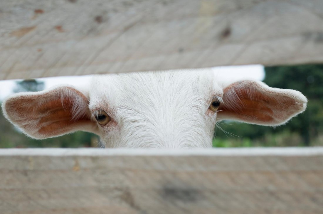 草原前的圍欄,圍欄後的羊