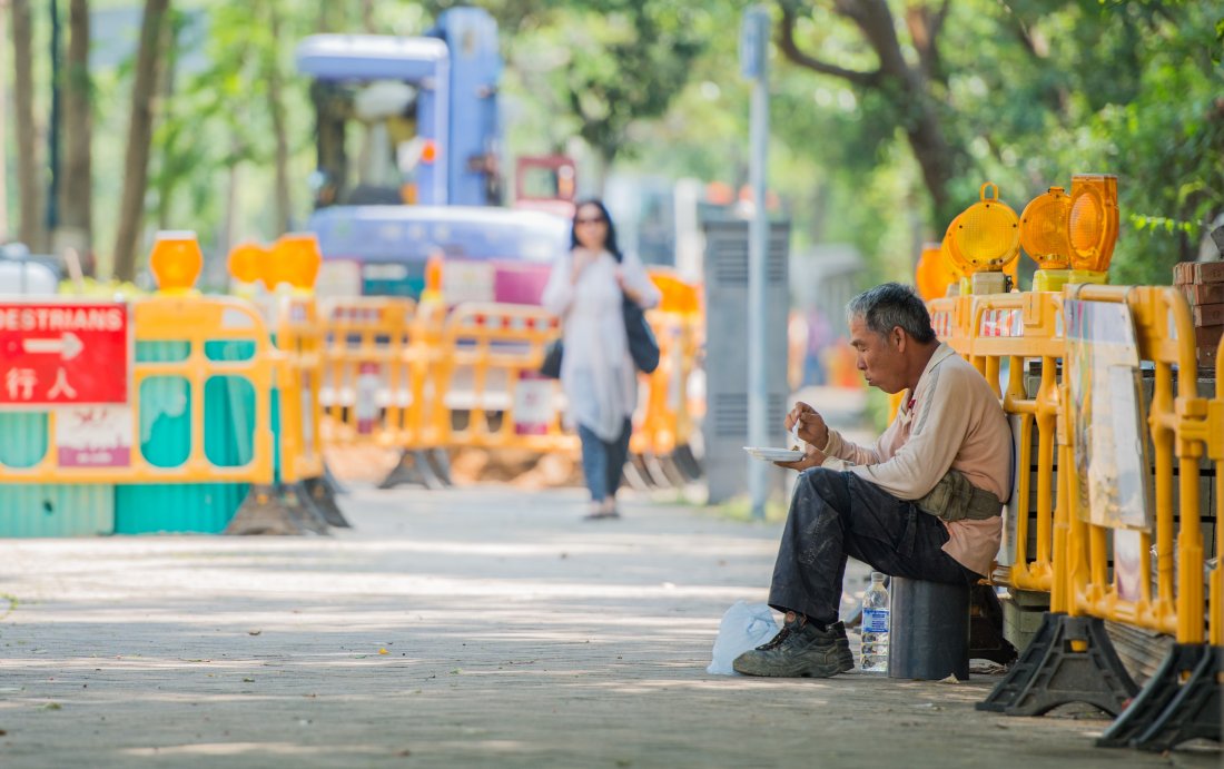 築路工人醫肚在路邊