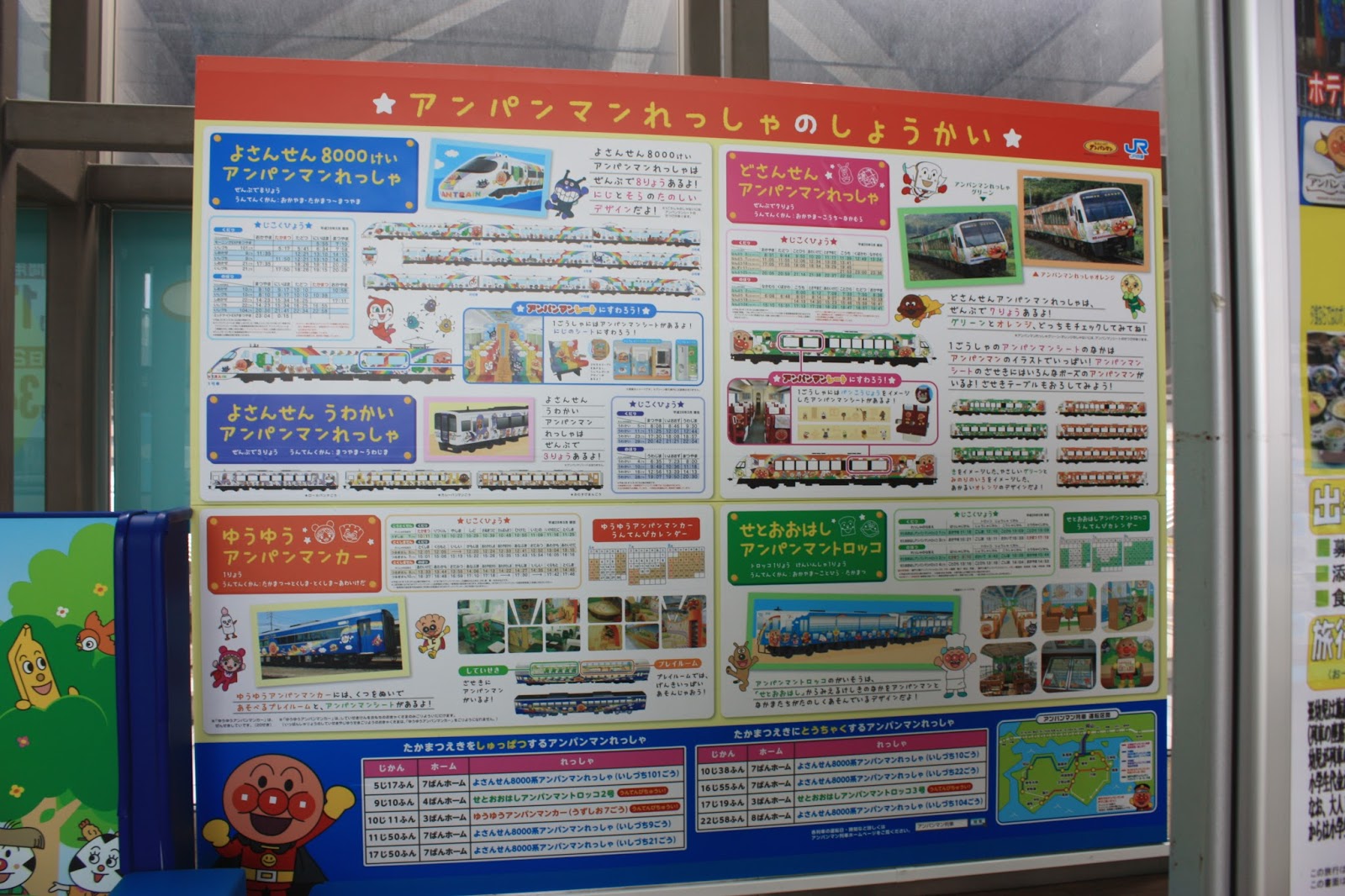 本來我們是計劃來乘搭麵包超人列車,但因為麵包超人列車都有指定的行駛時間表,加上言語不通和預訂不了指定席的劃位,(麵包超人列車指定席比較難劃位,據說都會被日本學校包場,所以出發前幾天劃位會較好)這次無縁乘搭麵包超人觀光列車,待下次再來時務必好好規劃一下!