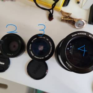 放五支副廠騰龍或威達及原廠Nikon自動或手動對焦鏡(再送一支手動對焦白咀NIKON 原廠135mm 3.5Q鏡)=2200HK$0