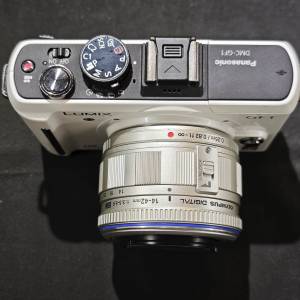 Panasonic GF1 松下 樂聲 + Olympus 奧林巴斯 14-42 14mm 42mm 14 42 跟1電一充連肩帶 95%new 送記憶卡 讀HK$900
