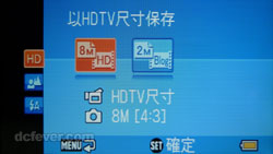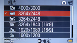 解像度最高可達 1200 萬像素 (插值),800 萬像素可分高或正常質素,還有 16:9 的比例可選。 |